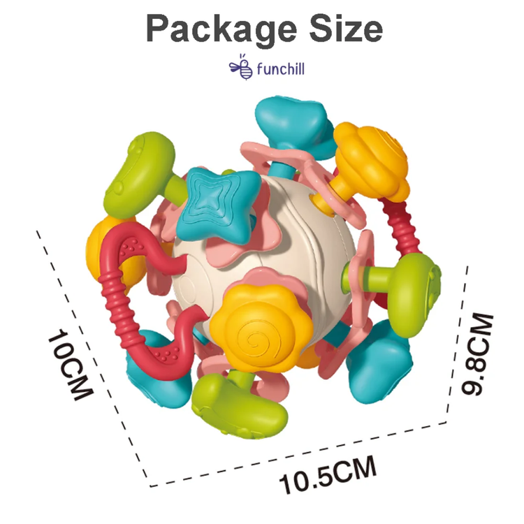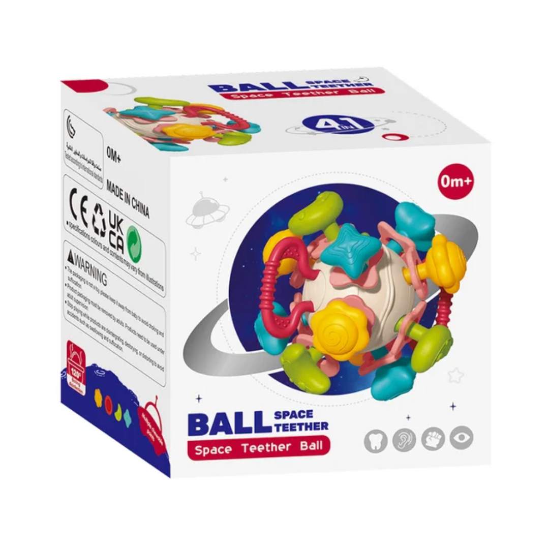 دندان گیر فضایی یک توپ با تعداد زیادی دندان گیر میباشد همین موضوع باعث شده تا نوزاد هنگام استفاده از این محصول بتواند از هر نقطه ایی که راحتتر بود و دسترسی داشت خارش لثه خود را برطرف کند.