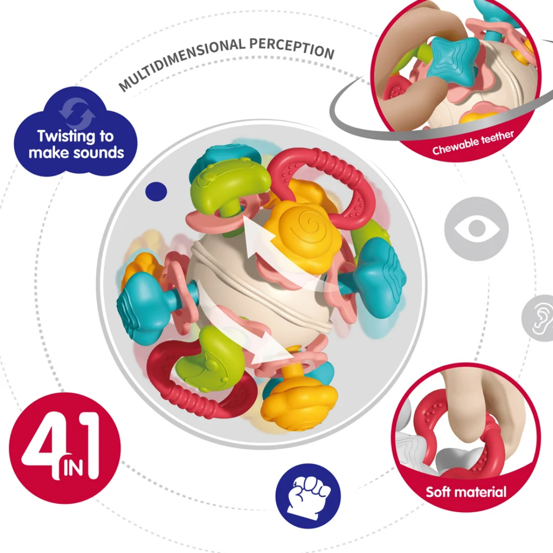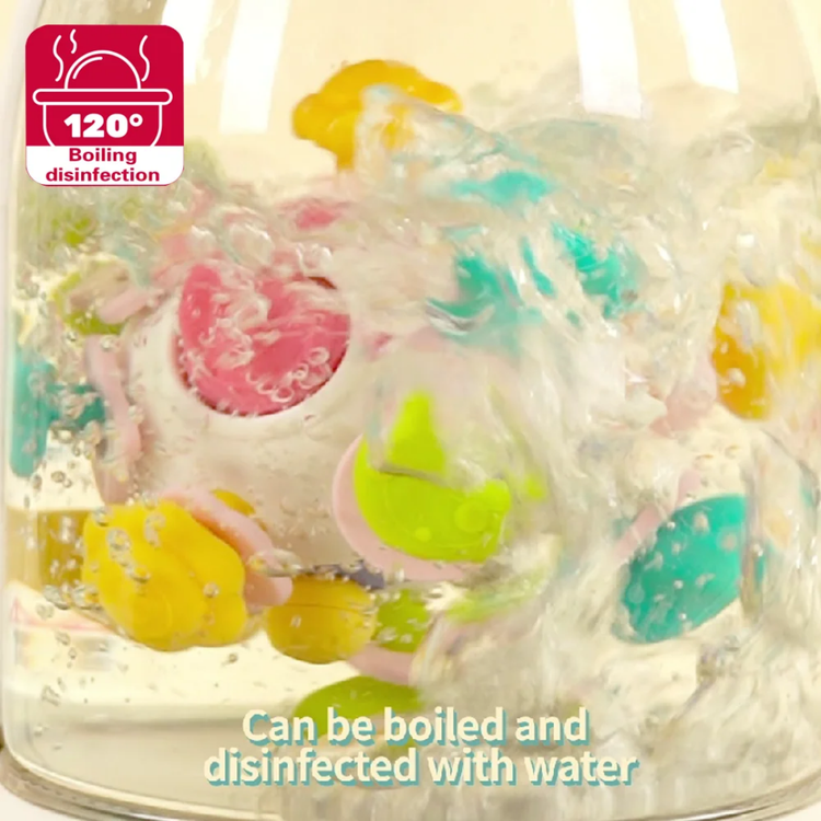 تقویت حس شنوایی، بینایی و لامسه کودک با توپ جغجغهدار سیلیکونی