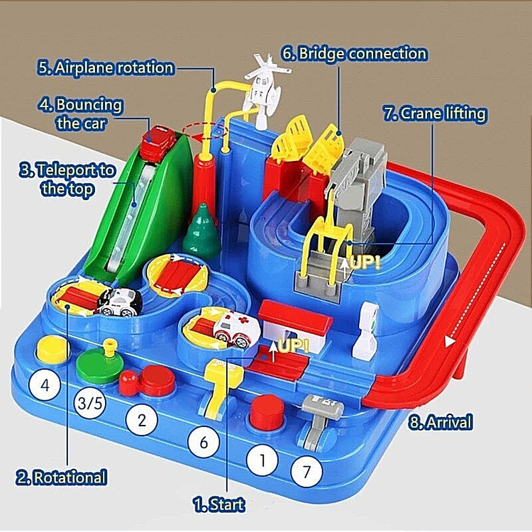 در اسباب بازی پارکینگ مکانیزه، باید با فشردن دکمه ها یا کشیدن اهرم ها ماشین ها را در مسیر حرکت خود هدایت کنن.