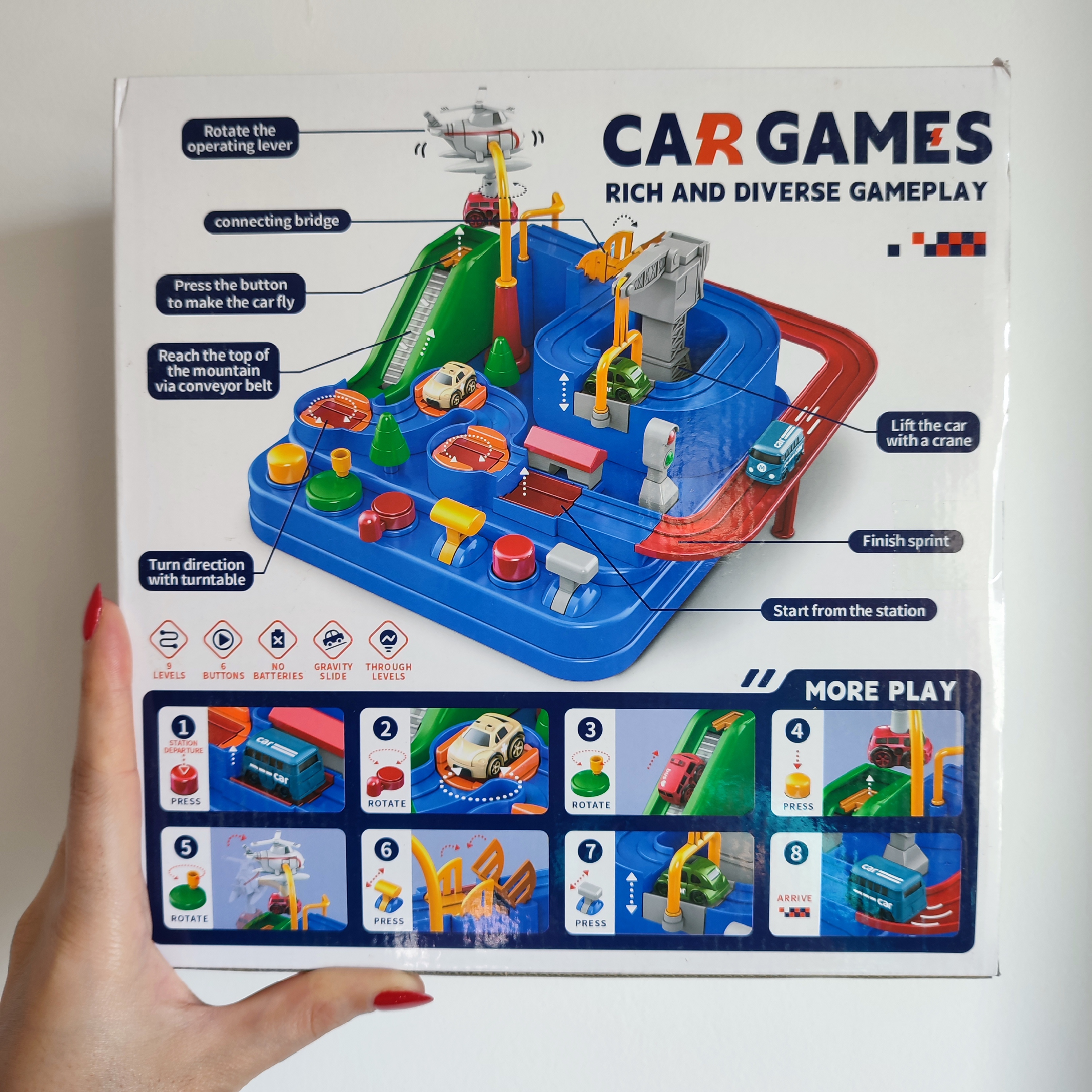 اسباب بازی پارکینگ مکانیزه ماشین، دو عدد ماشین همراه خود دارد و سایز ساخته شده اش ۲۶ در ۲۶ سانتیمتر است که یک بازی عالی برای هدیه دادن محسوب می شود.