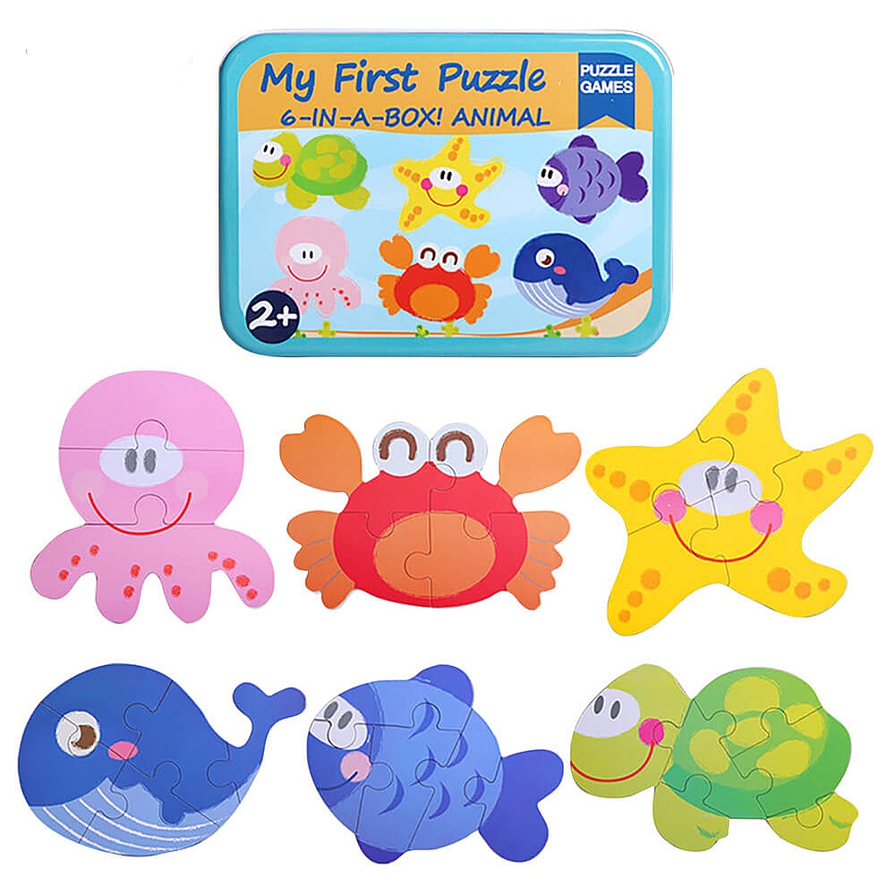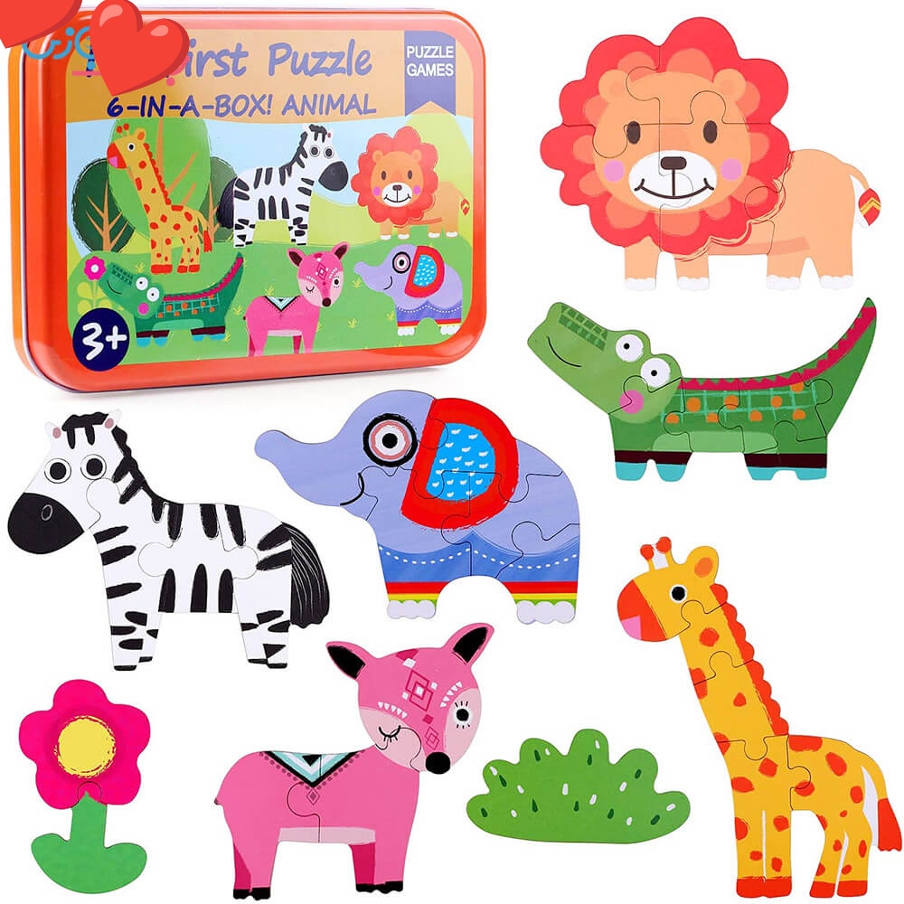 پازل شش در یک جعبه فلزی وارداتی حیوانات