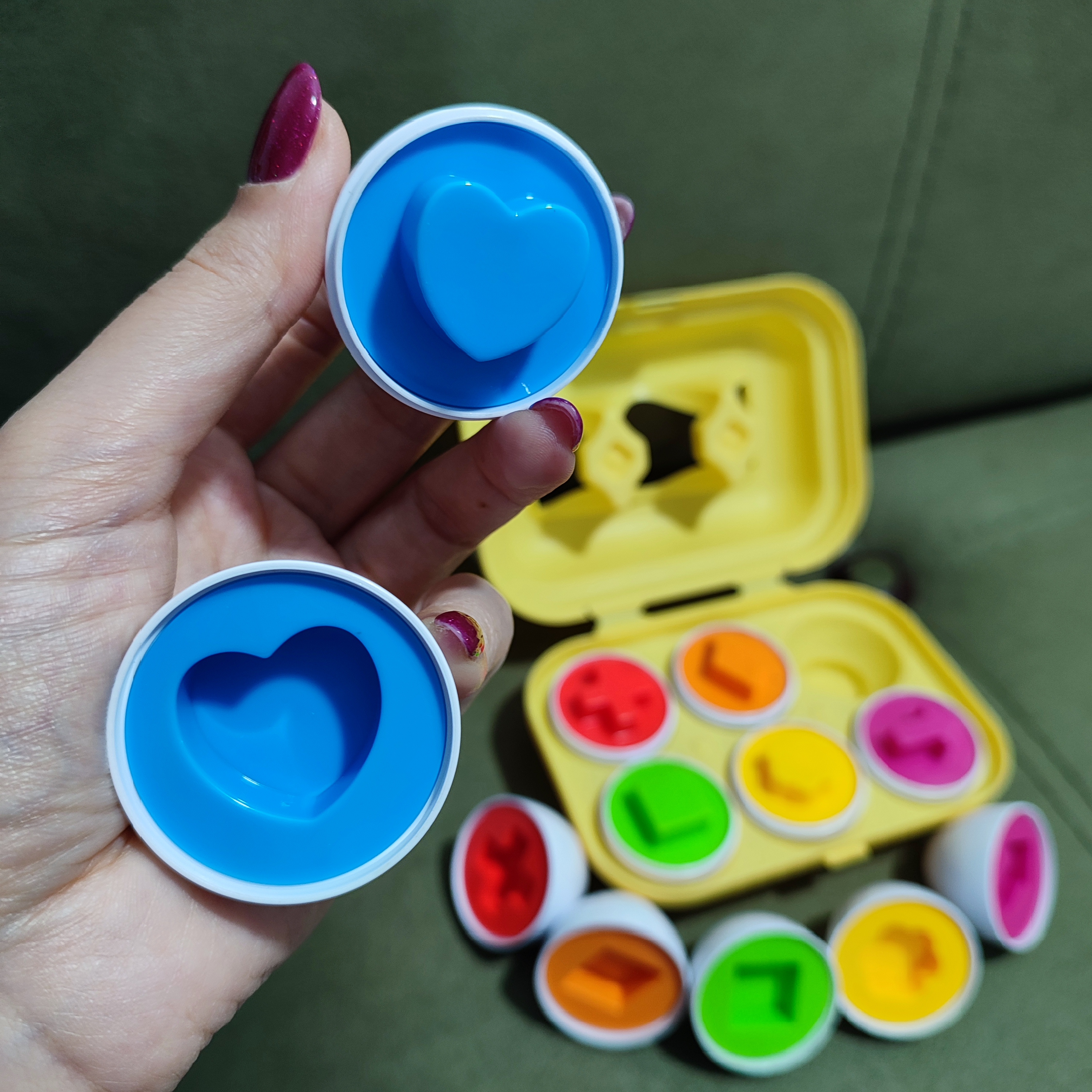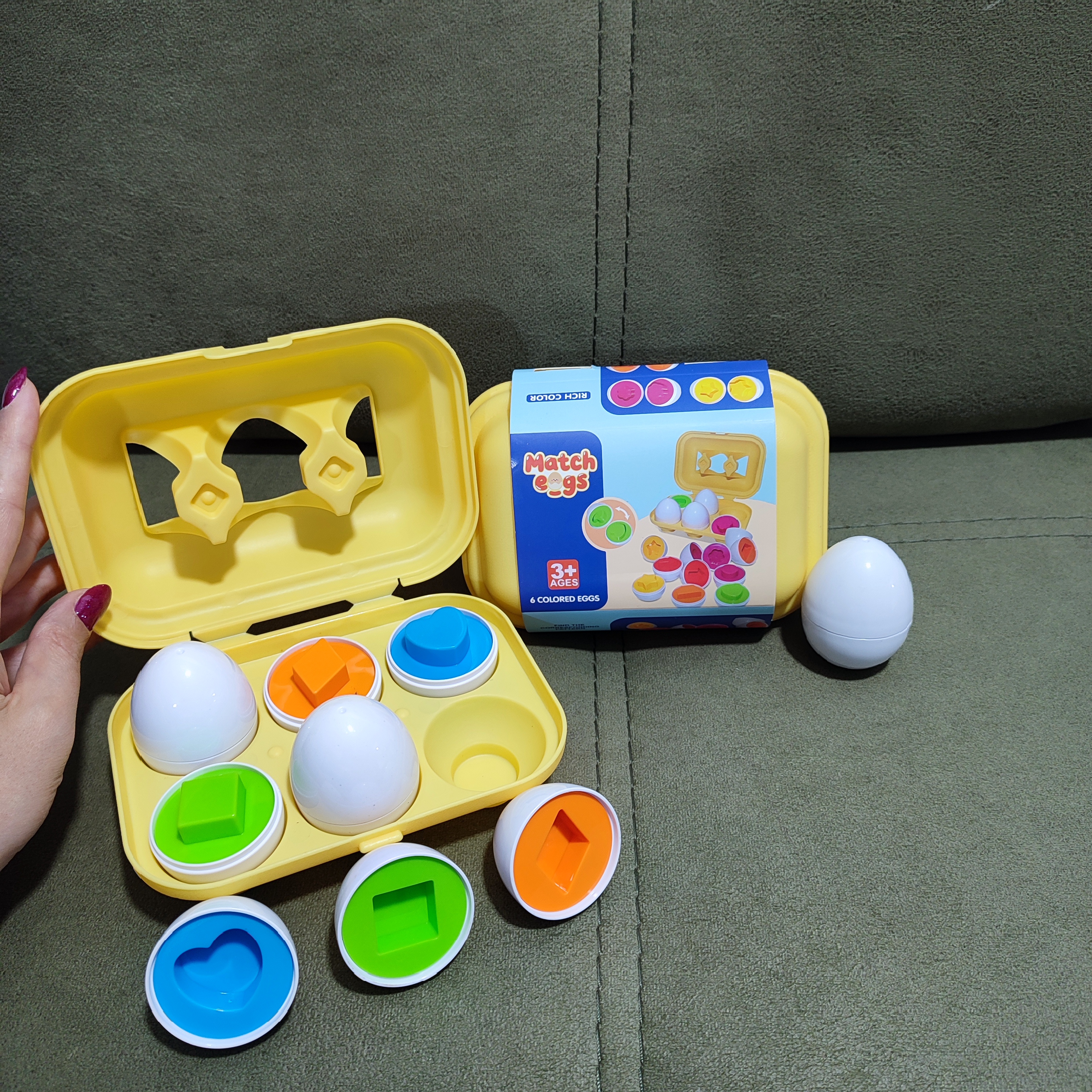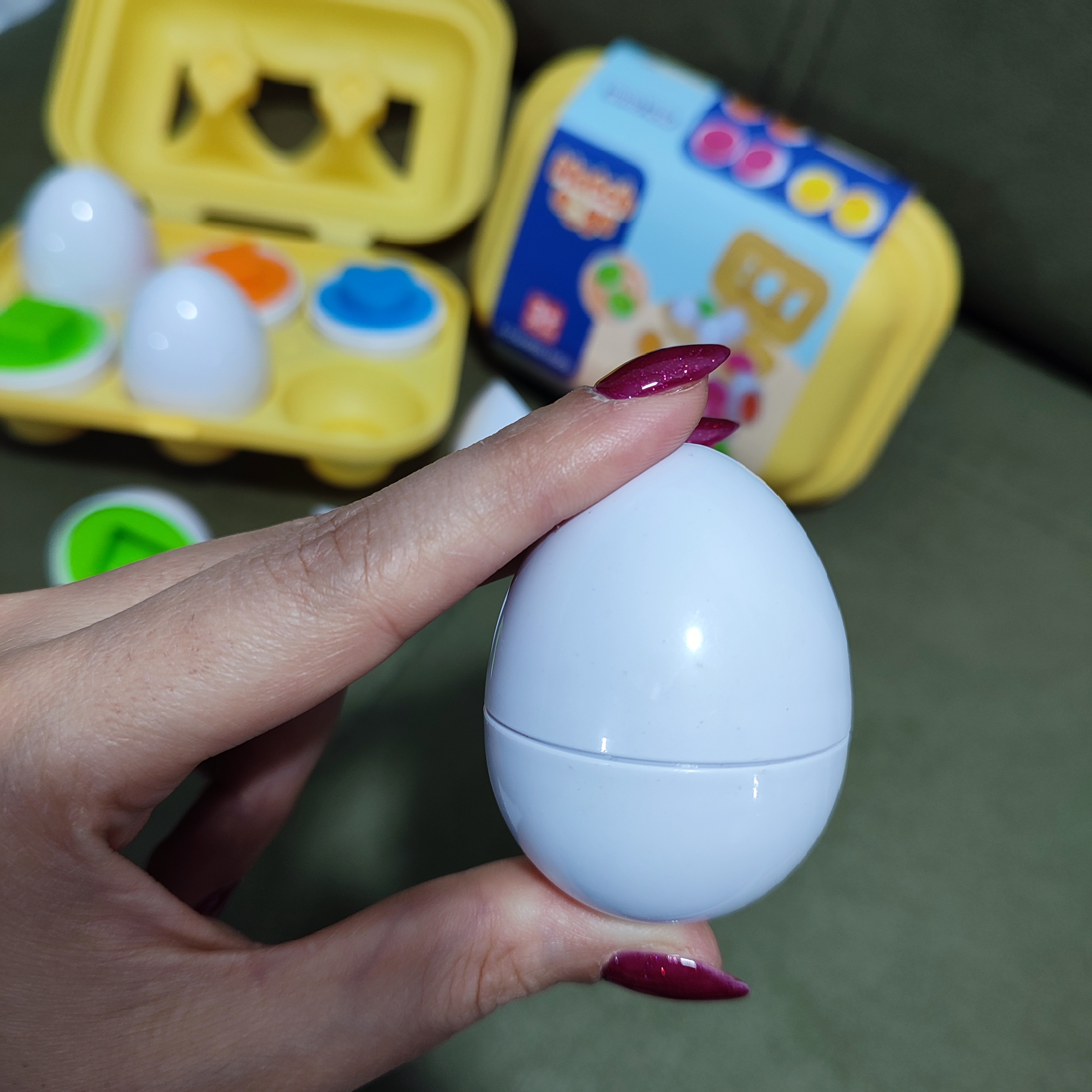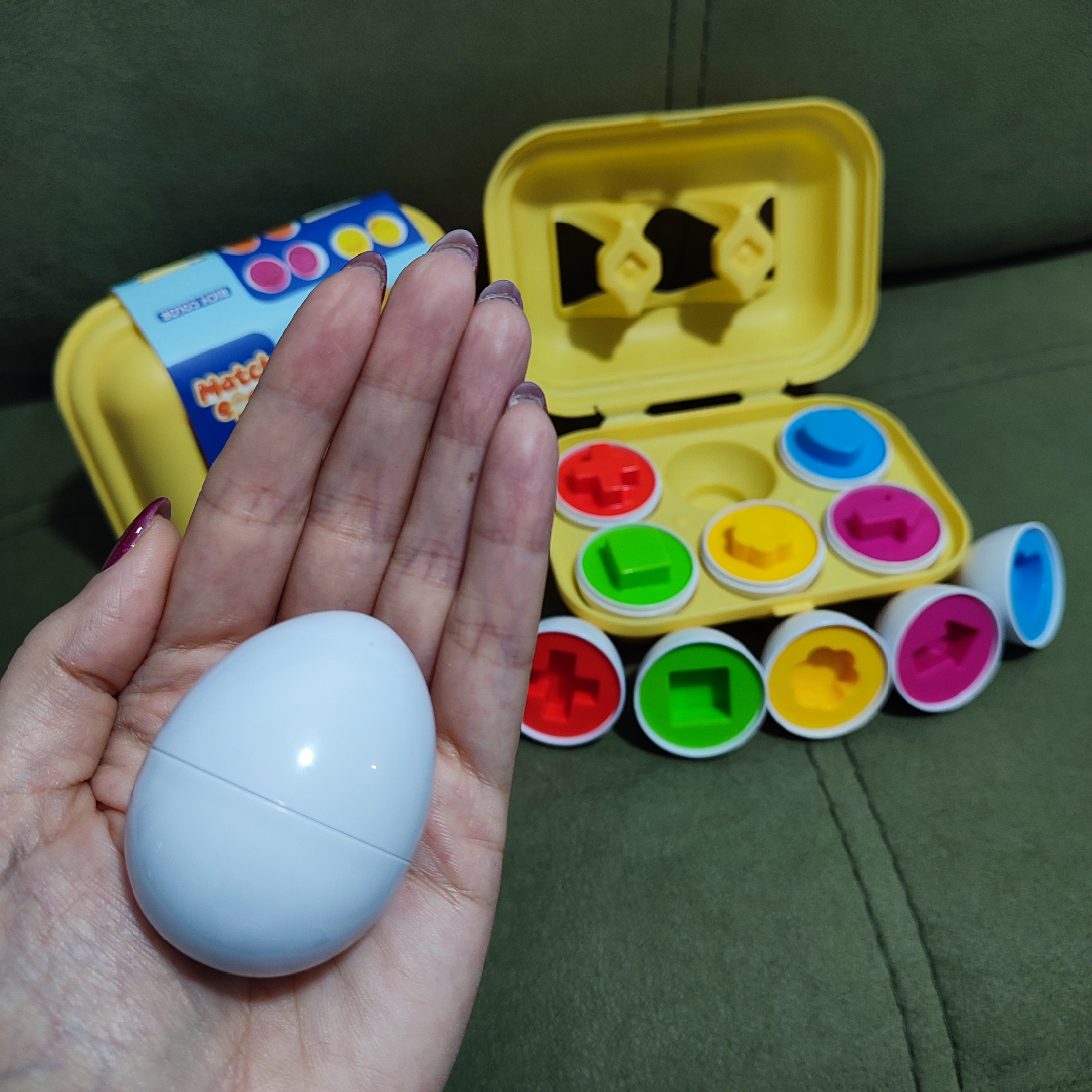 این بازی شامل تخممرغهای رنگی است که هرکدام از داخل به شکلهای هندسی مختلف تقسیم میشوند و کودک باید با دقت و تمرکز، دو نیمه همشکل را بهدرستی به هم متصل کند.