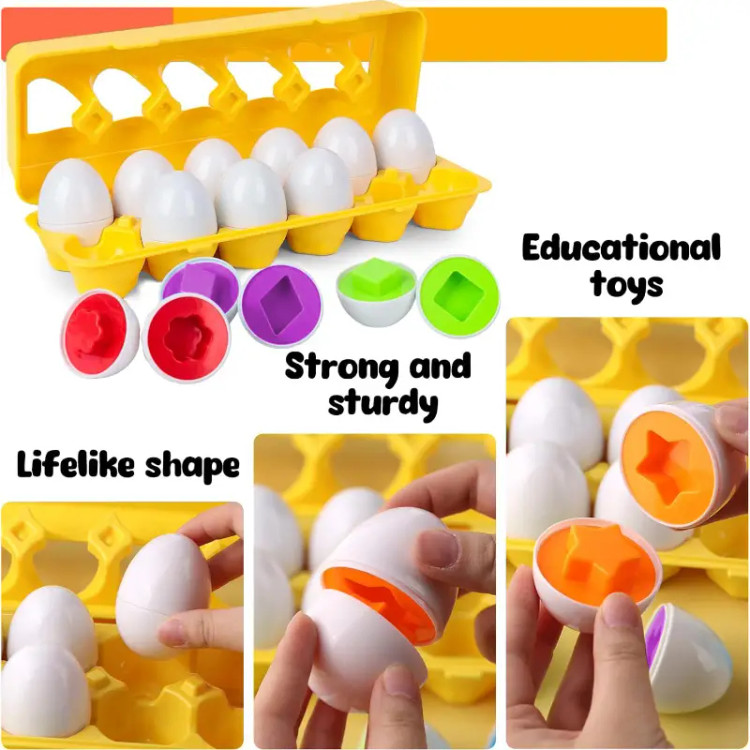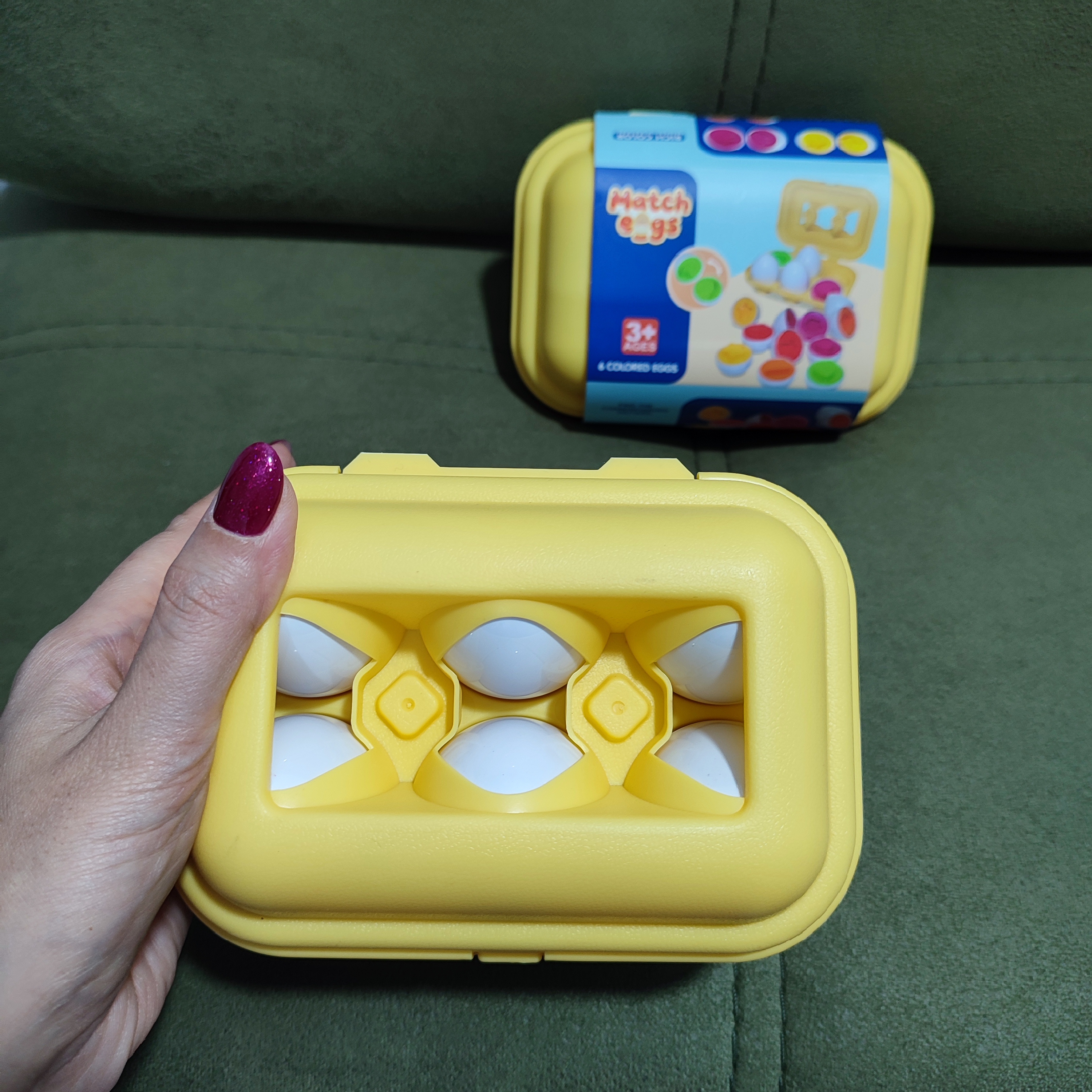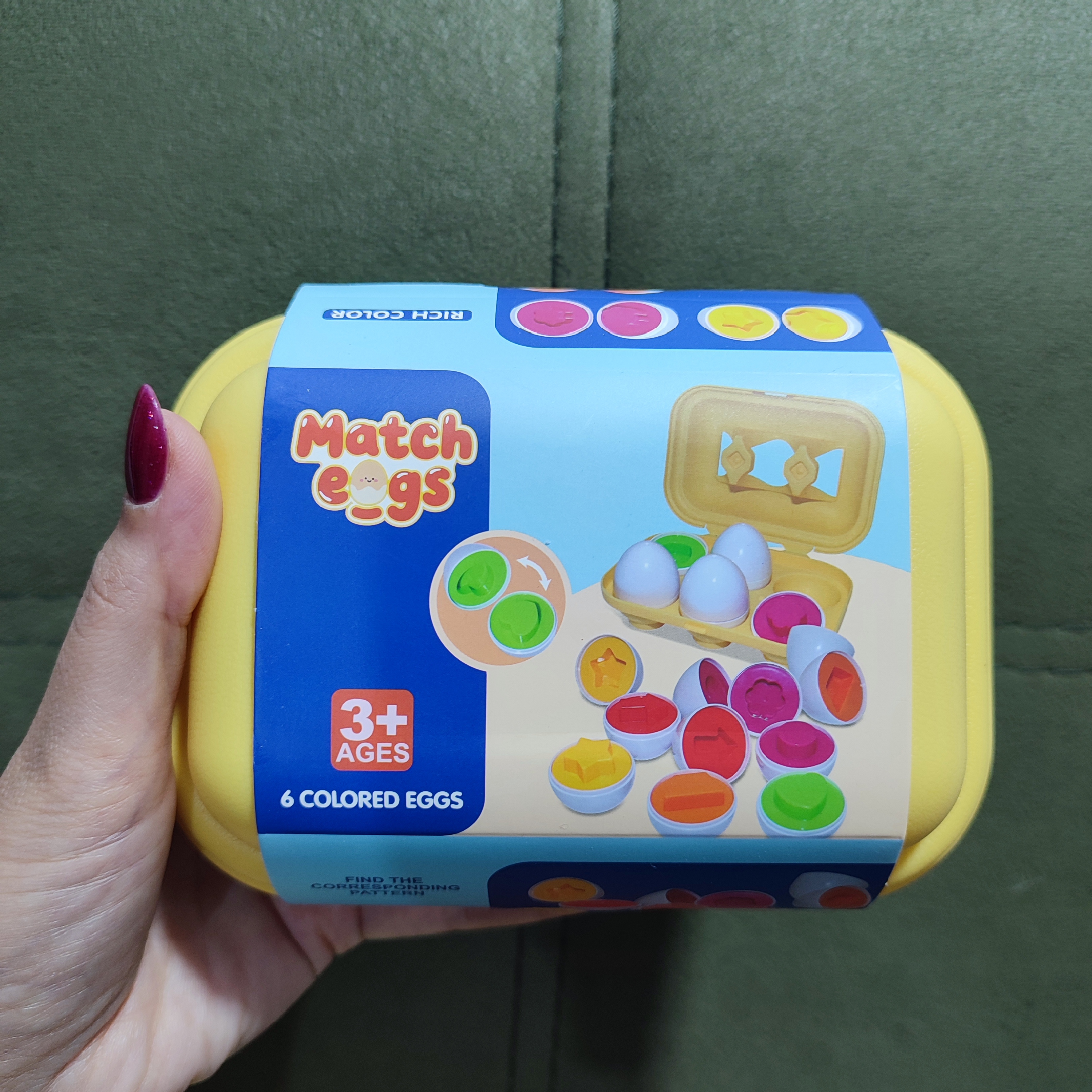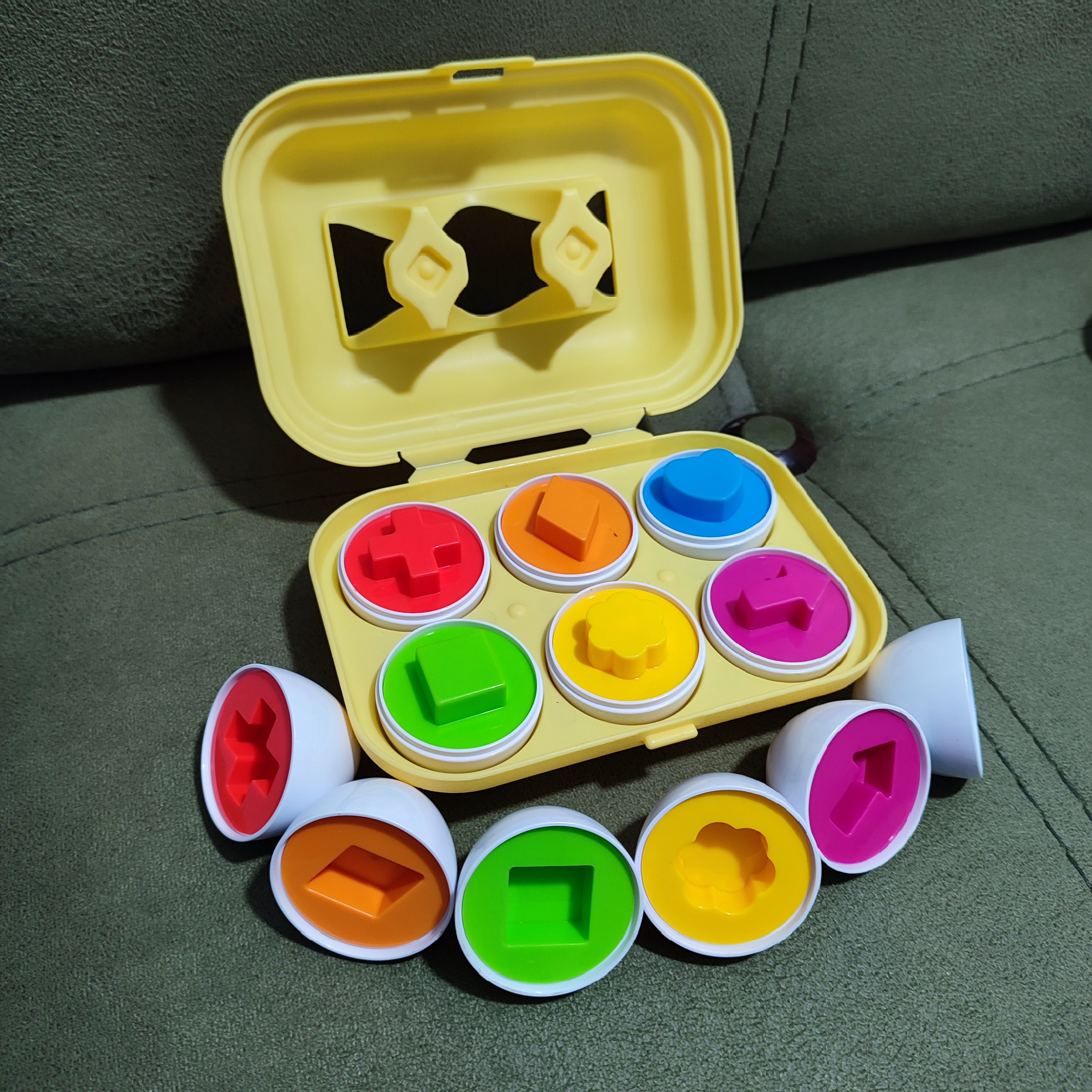 این بازی شامل تخممرغهای رنگی است که هرکدام از داخل به شکلهای هندسی مختلف تقسیم میشوند و کودک باید با دقت و تمرکز، دو نیمه همشکل را بهدرستی به هم متصل کند.