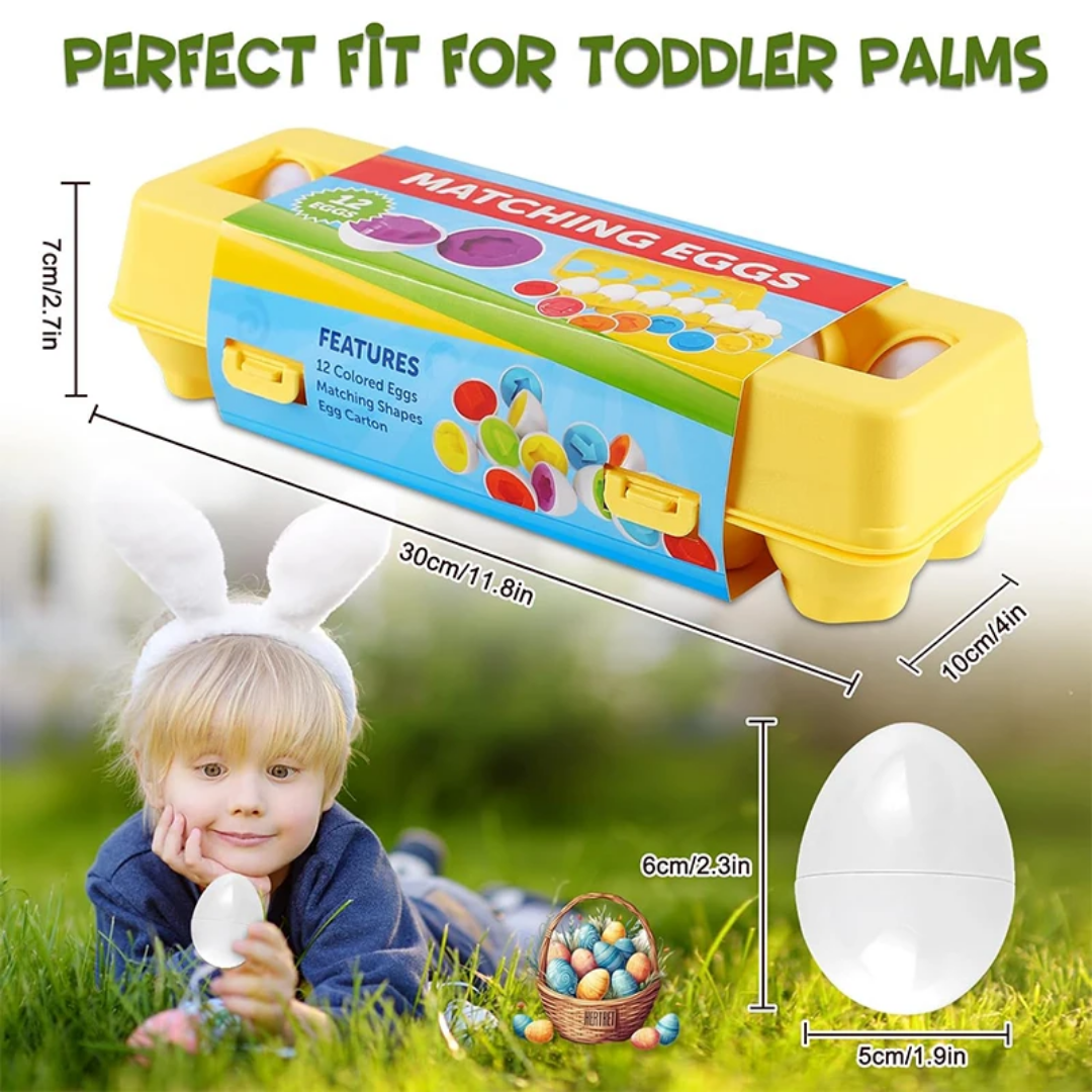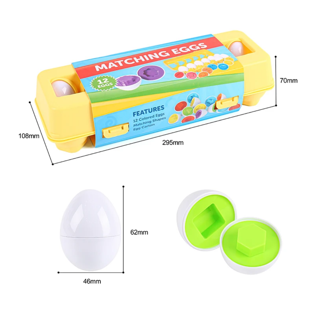 این بازی شامل تخممرغهای رنگی است که هرکدام از داخل به شکلهای هندسی مختلف تقسیم میشوند و کودک باید با دقت و تمرکز، دو نیمه همشکل را بهدرستی به هم متصل کند.
