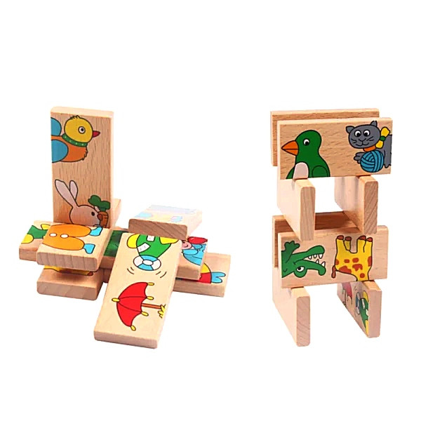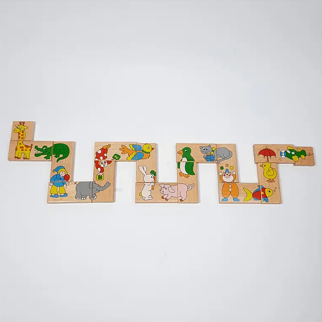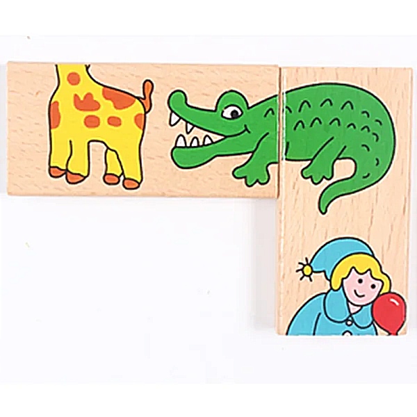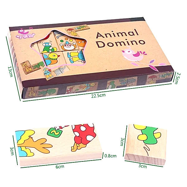 دومینو چوبی حیوانات یک بازی فکری است که باید قطعات طوری کنار یکدیگر چیده شوند که هرقطعه بتواند تصویر حیوان مورد نظر را کامل کند.