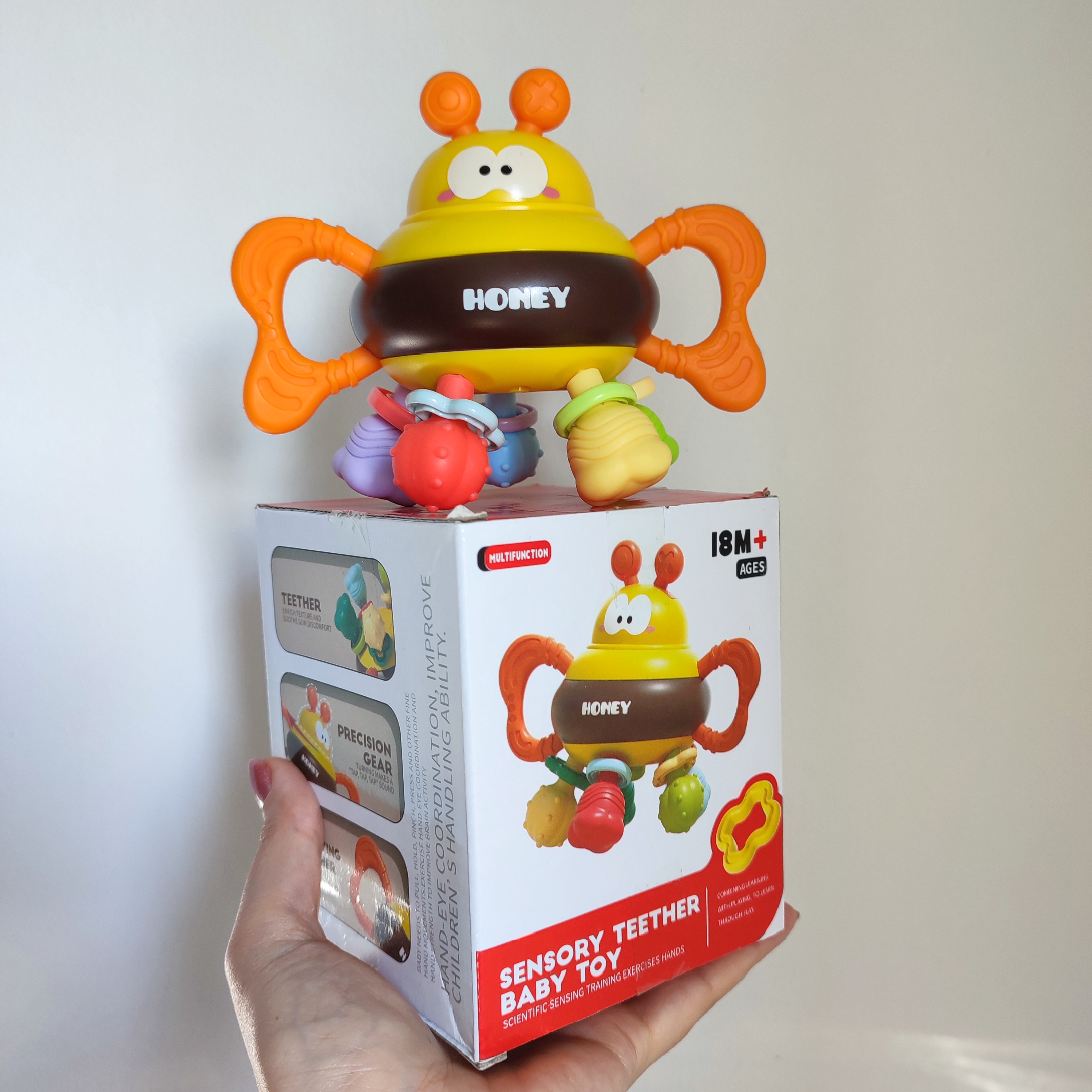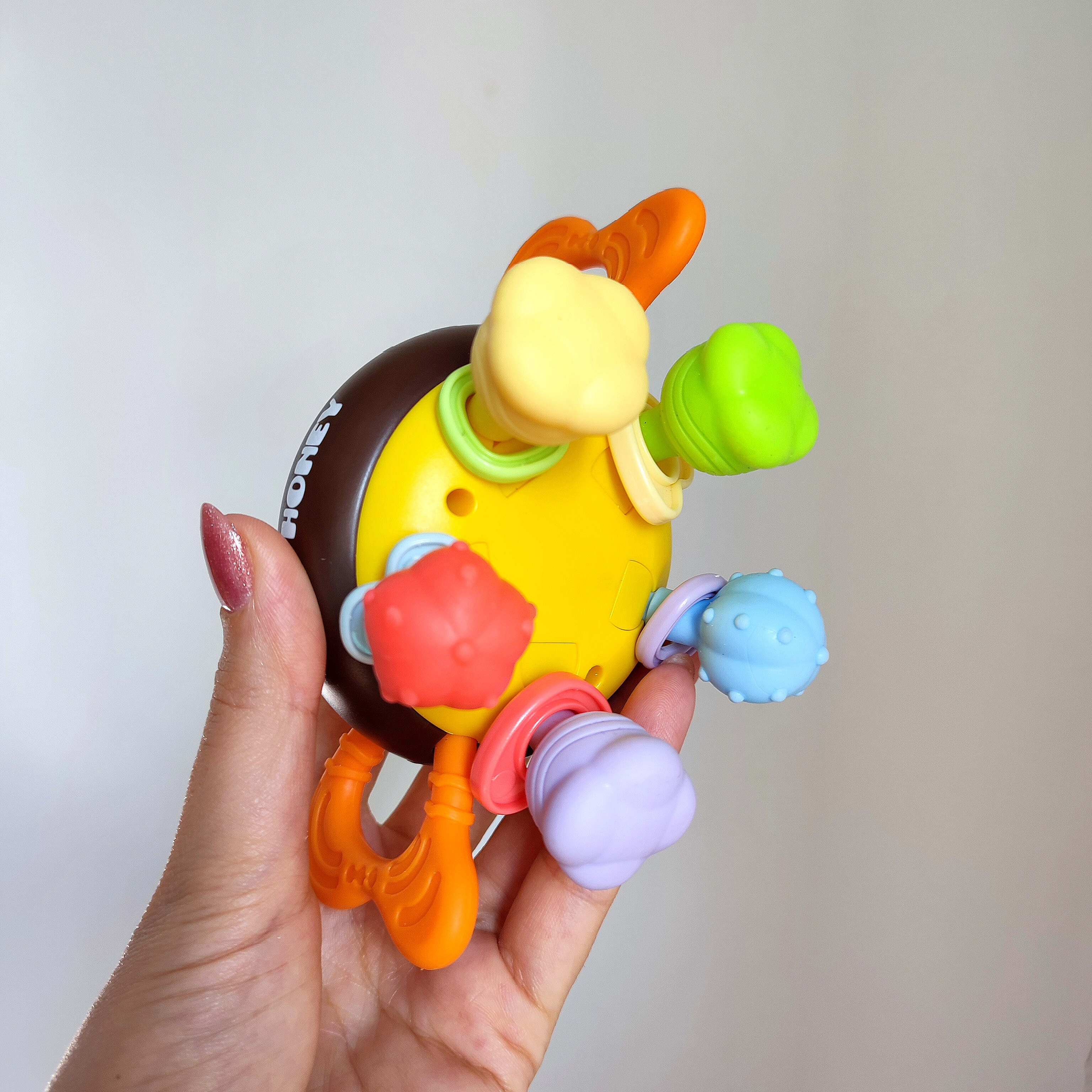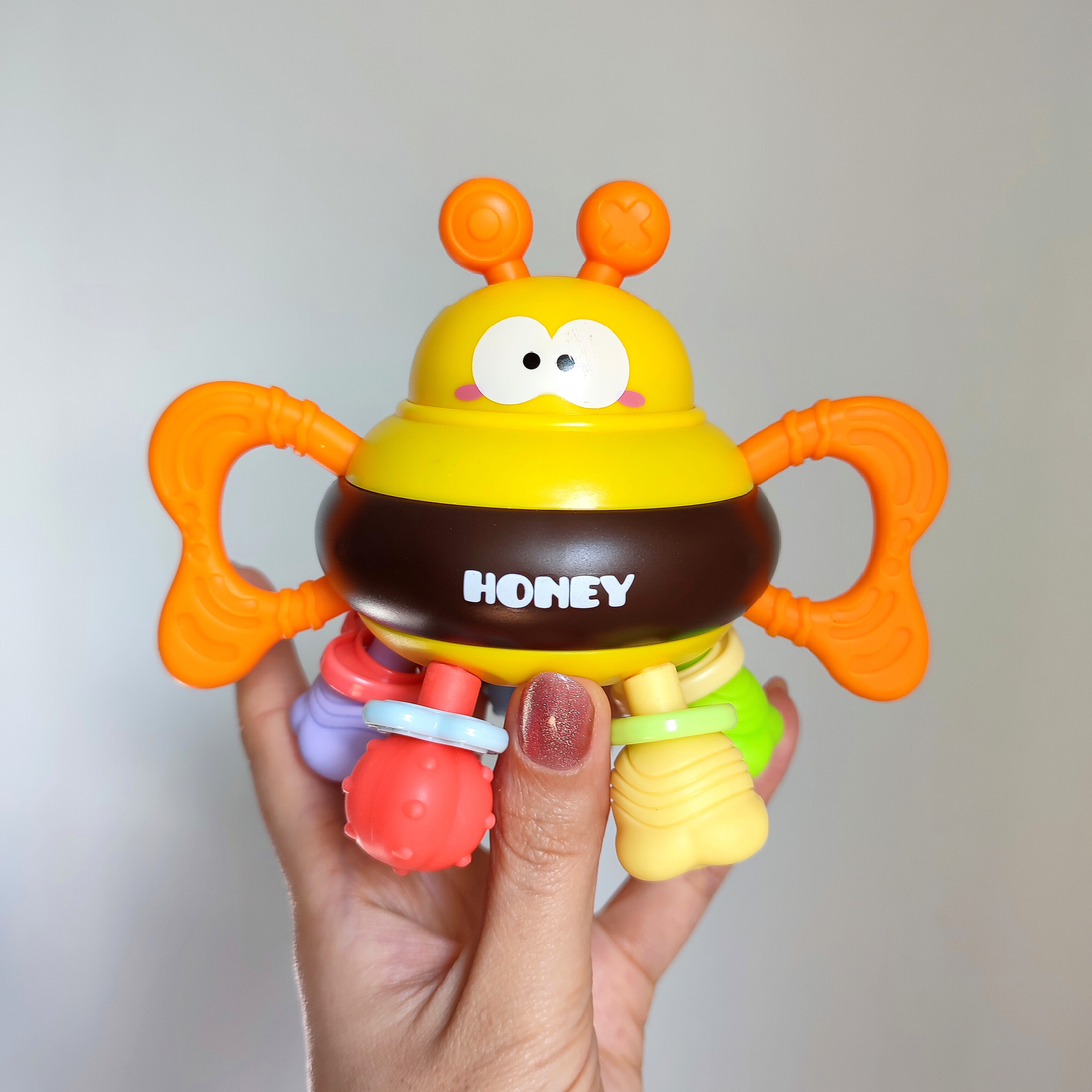 اگر به دنبال یک دندانگیر ایمن و در عین حال یک اسباببازی آموزشی برای تقویت مهارتهای حرکتی نوزاد خود هستید، دندانگیر و دستورزی زنبور نوزاد انتخابی ایدهآل است. طراحی فانتزی به شکل زنبور با رنگهای شاد و متنوع، توجه کودک را جلب کرده و او را به بازی و کشف تشویق میکند.