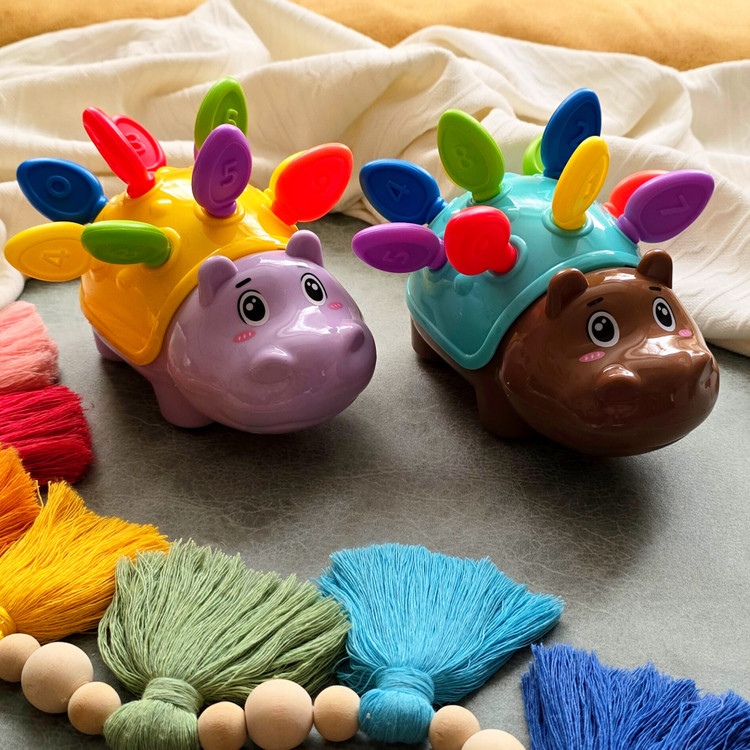 بچهها میتوانند با جاگذاری تیغهای رنگی، هم از بازی لذت ببرند و هم مفاهیمی مثل رنگها، شمارش و هماهنگی چشم و دست را یاد بگیرند.