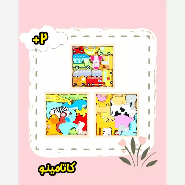 بازی کاتامینو چوبی مربعی زیر الگودار طرح حیوانات اهلی